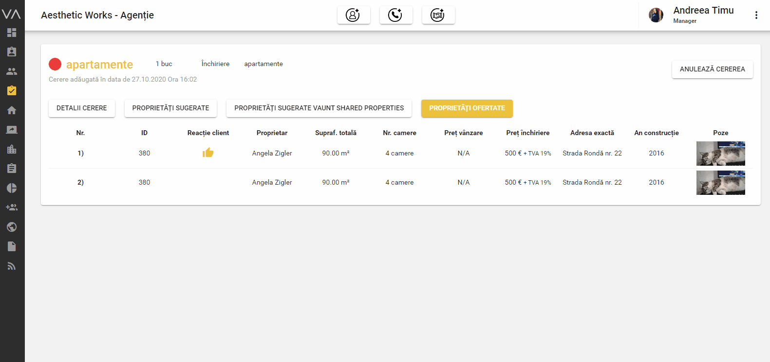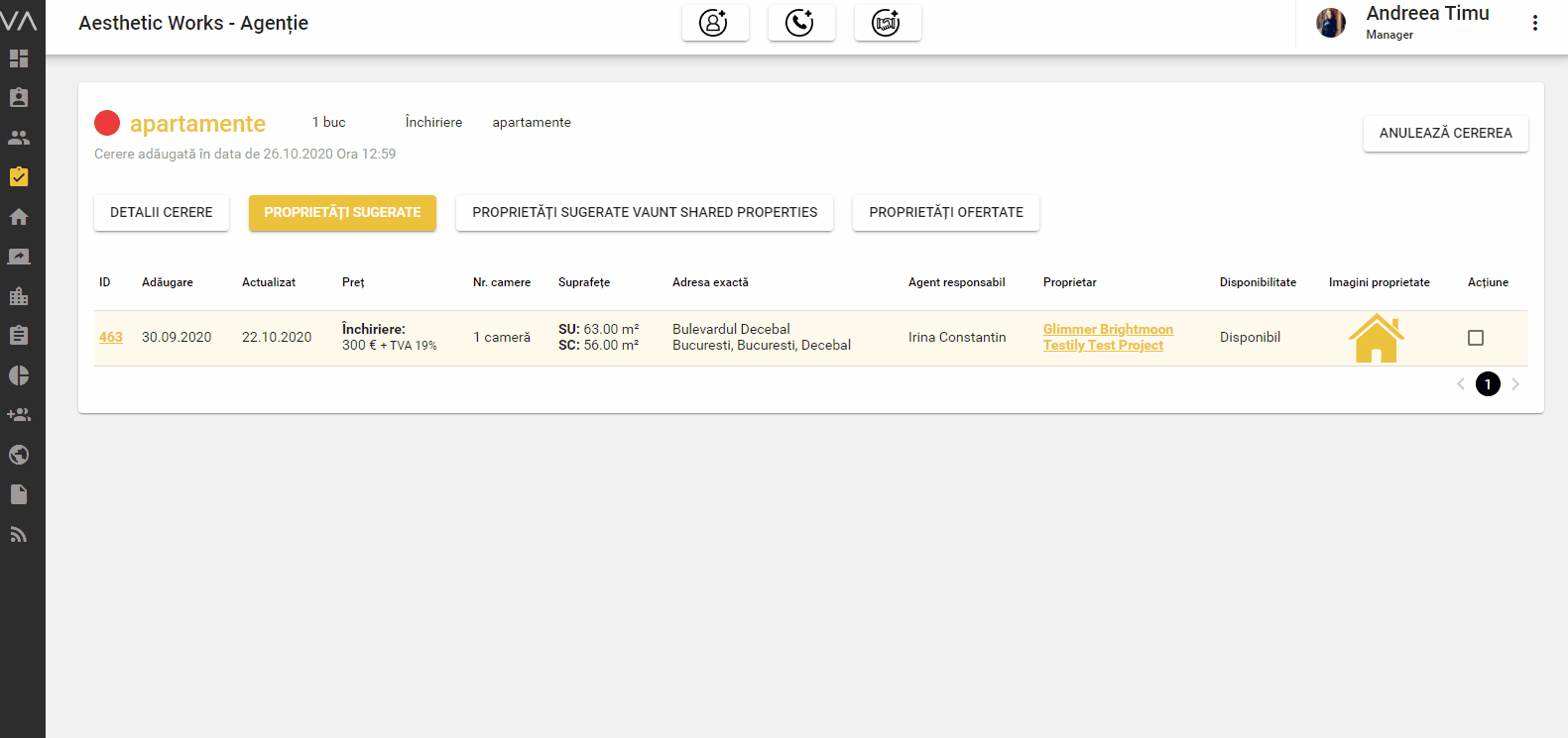 În momentul în care ai trimis o cerere lead-ului tău, aceasta se va înregistra în secțiunea Proprietăți ofertate.